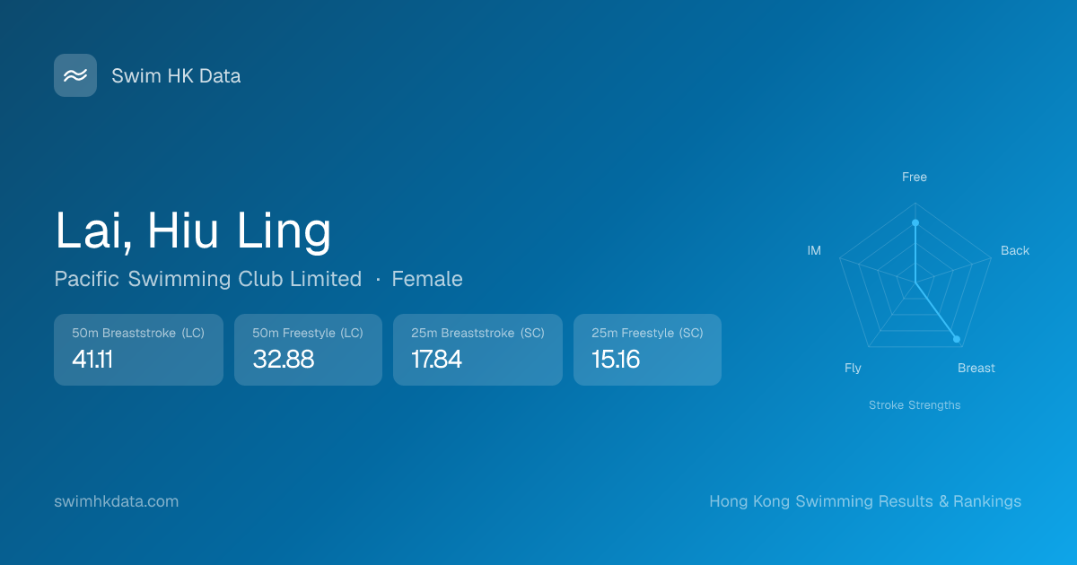 | 25m Breaststroke | 17.84 2023-09-18 | 2 | 34 | 2023-09-18 |