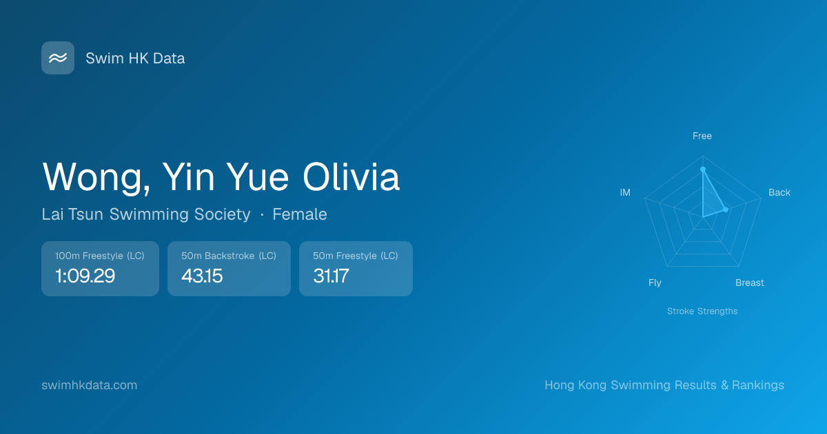 | 50m Backstroke | 43.15 2019-12-06 | 4 | 32 | 2019-12-06 |