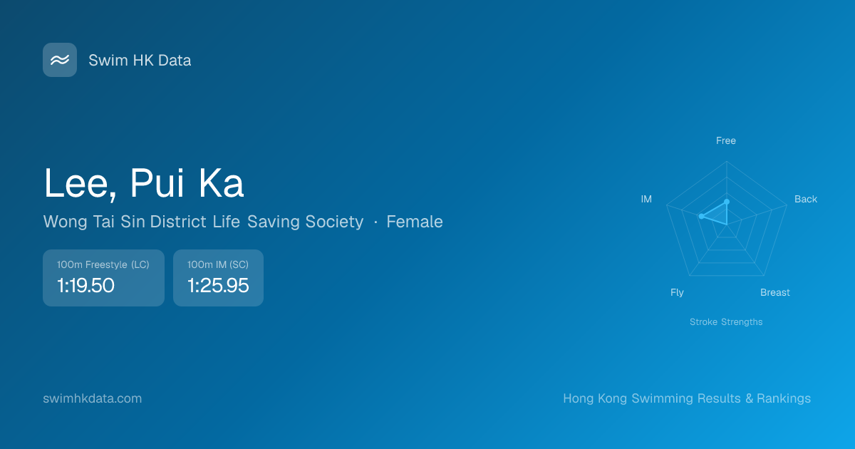| 100m Freestyle | 1:19.50 2024-12-02 | 5 | 35 | 2024-12-02 |