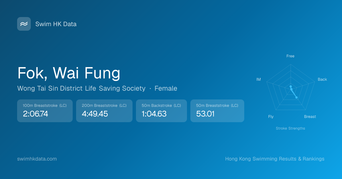 | 50m Freestyle | 52.10 2019-09-24 | 2 | 61 | 2019-09-24 |
