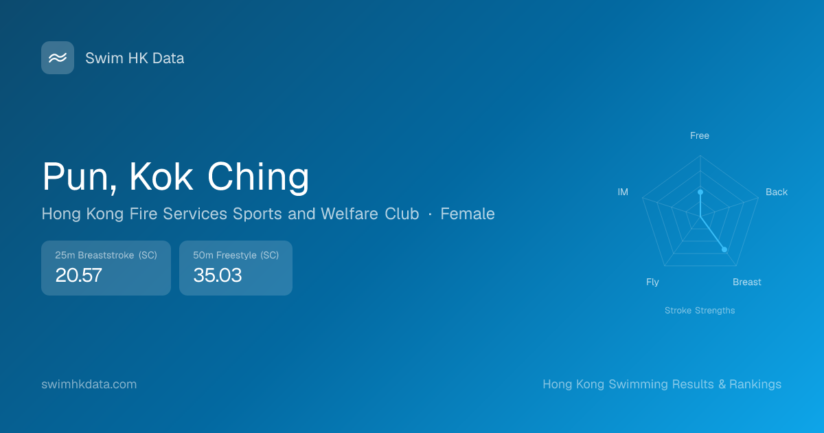| 25m Breaststroke | 20.57 2023-09-18 | 1 | 50 | 2023-09-18 |