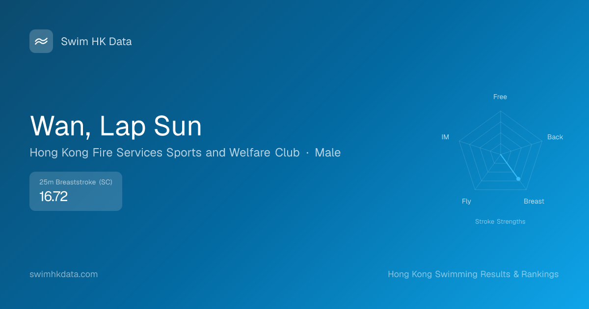 | 25m Breaststroke | 16.72 2023-09-18 | 5 | 57 | 2023-09-18 |