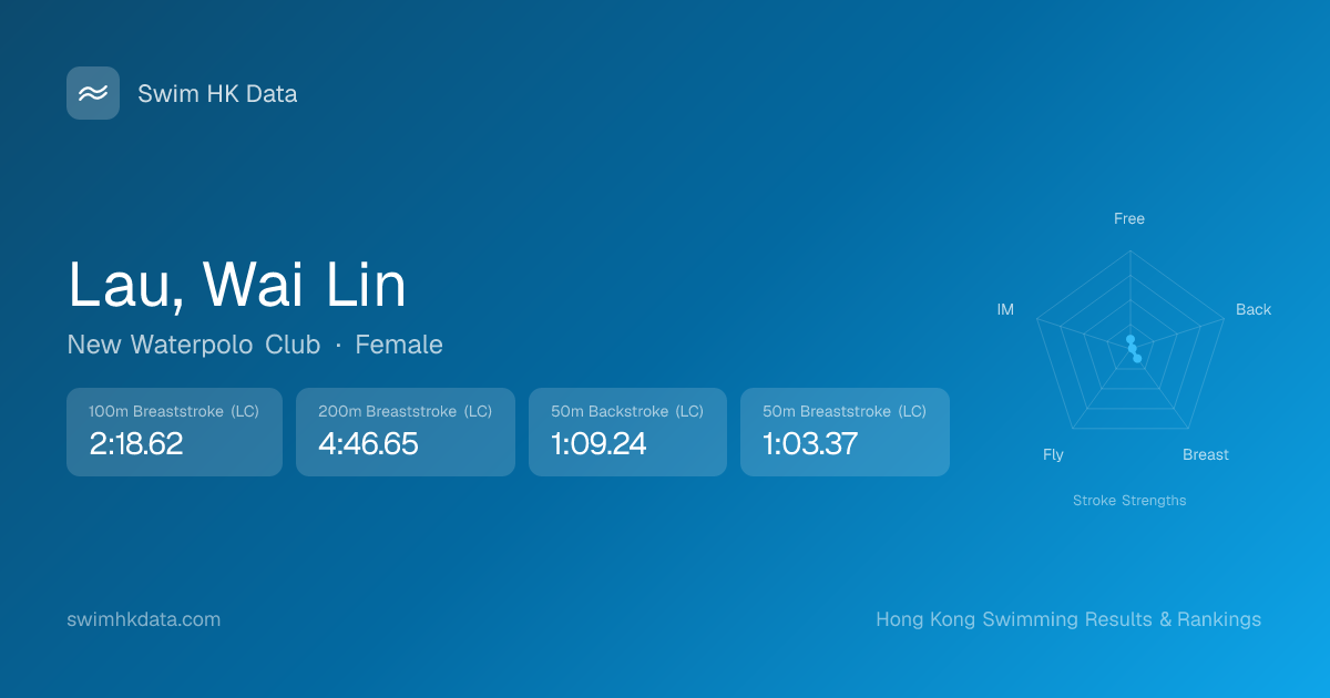 | 50m Freestyle | 51.86 2019-09-24 | 1 | 63 | 2019-09-24 |