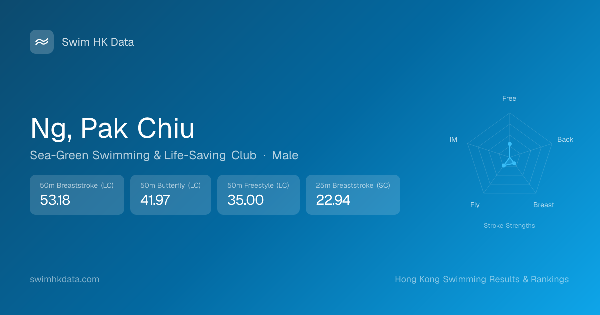 | 50m Butterfly | 41.97 2019-12-06 | 5 | 65 | 2019-12-06 |