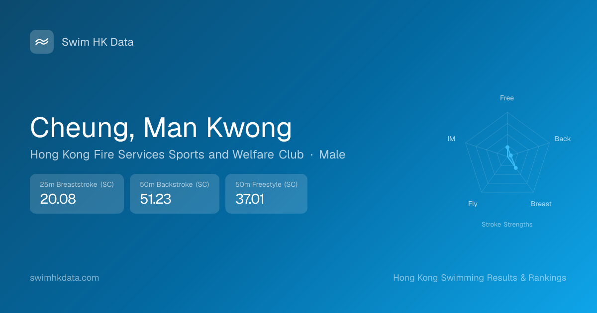 | 25m Breaststroke | 20.08 2024-09-24 | 5 | 57 | 2024-09-24 |