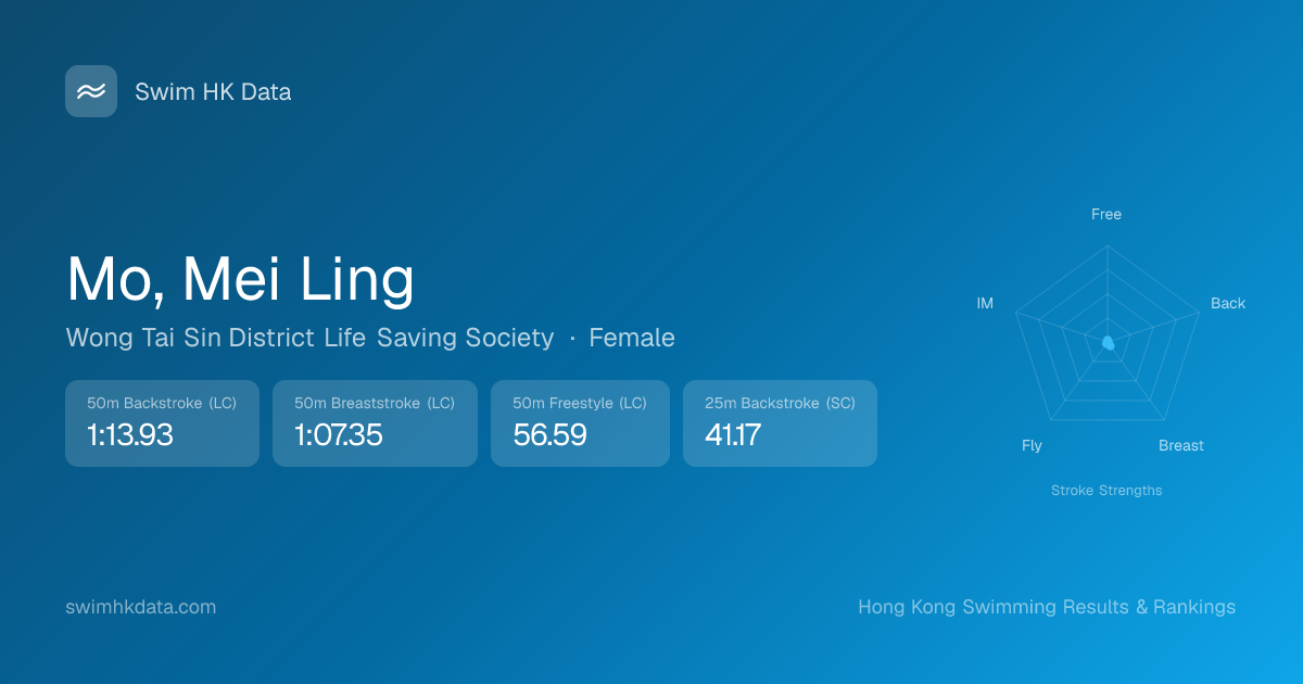 | 25m Backstroke | 41.17 2026-01-20 | 6 | 72 | 2026-01-20 |