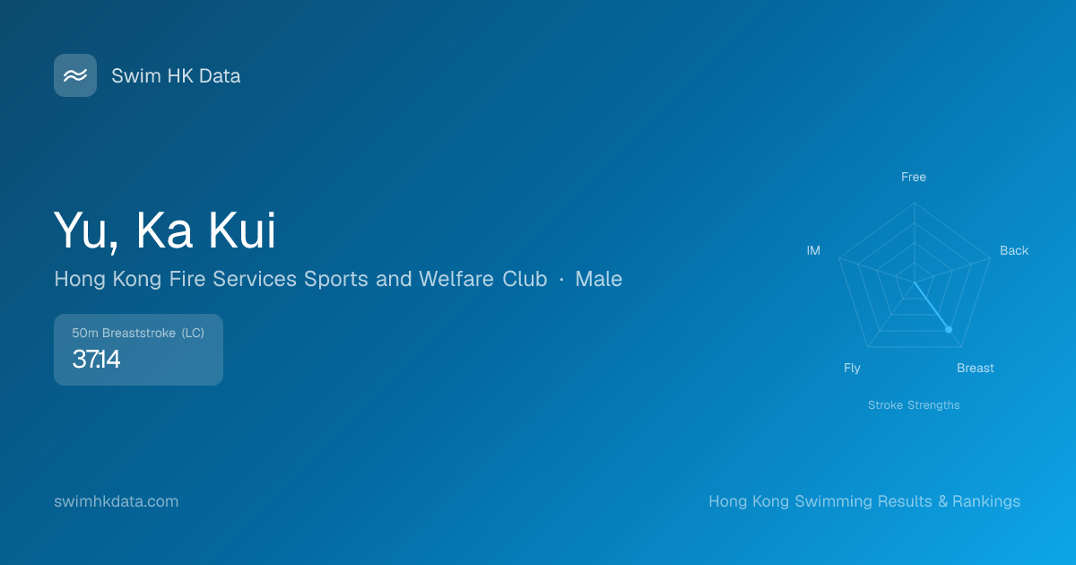 | 50m Breaststroke | 37.14 2021-06-21 | 1 | 43 | 2021-06-21 |