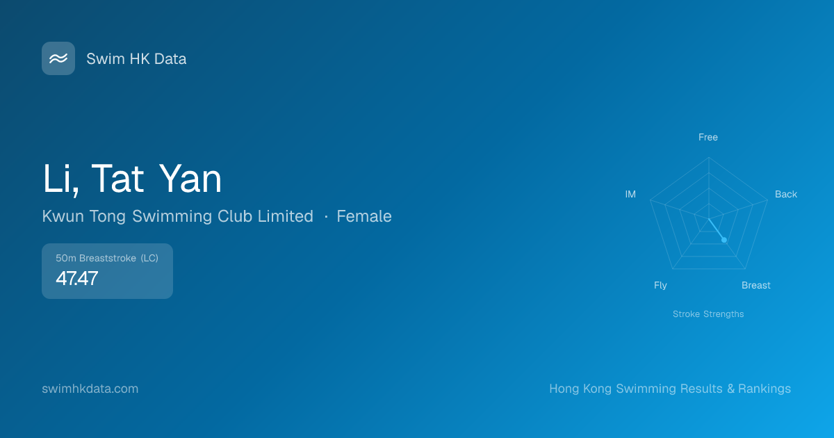 | 50m Breaststroke | 47.47 2022-11-28 | 2 | 31 | 2022-11-28 |