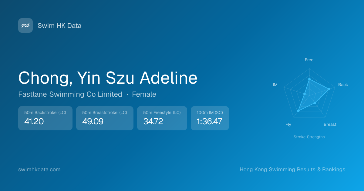 | 50m Freestyle | 34.72 2025-03-24 | 1 | 55 | 2025-03-24 |
