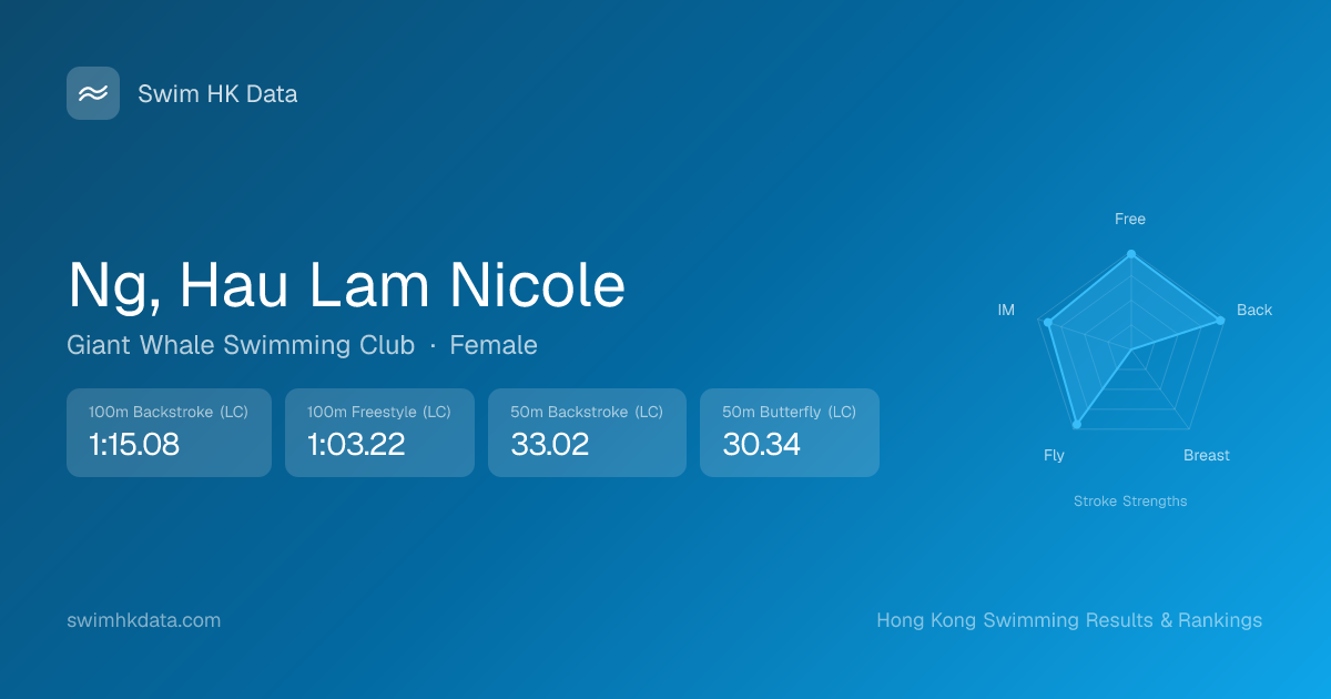 This chart shows how you compare in each stroke based on all your race results. It's just for fun — keep swimming, every practice makes you faster and stronger! 💪