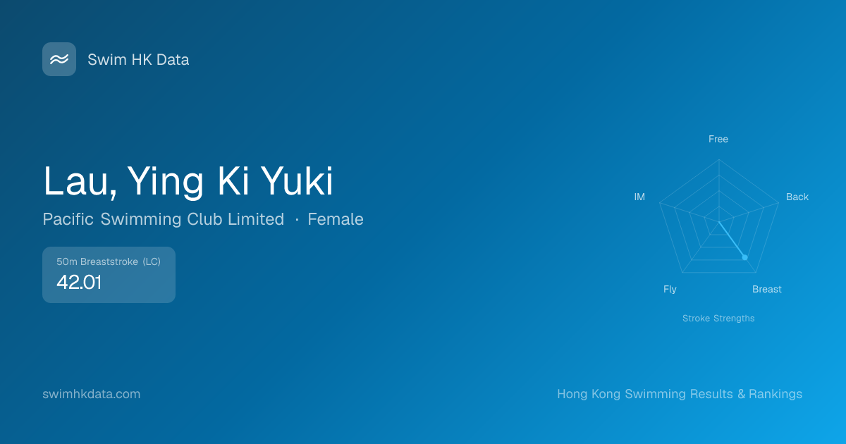 | 50m Breaststroke | 42.01 2019-03-25 | 2 | 23 | 2019-03-25 |