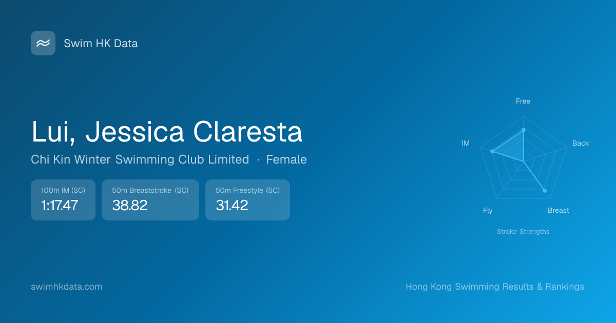 | 50m Breaststroke | 38.82 2015-03-16 | 1 | 16 | 2015-03-16 |