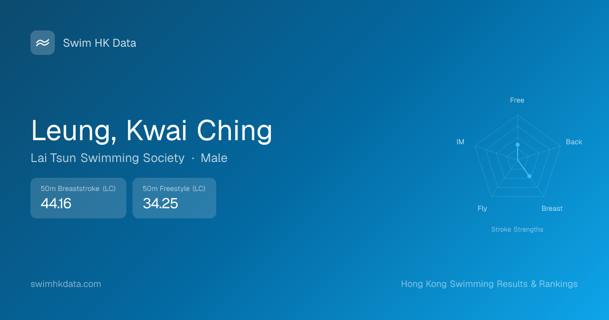 | 50m Breaststroke | 44.16 2019-12-06 | 5 | 61 | 2019-12-06 |