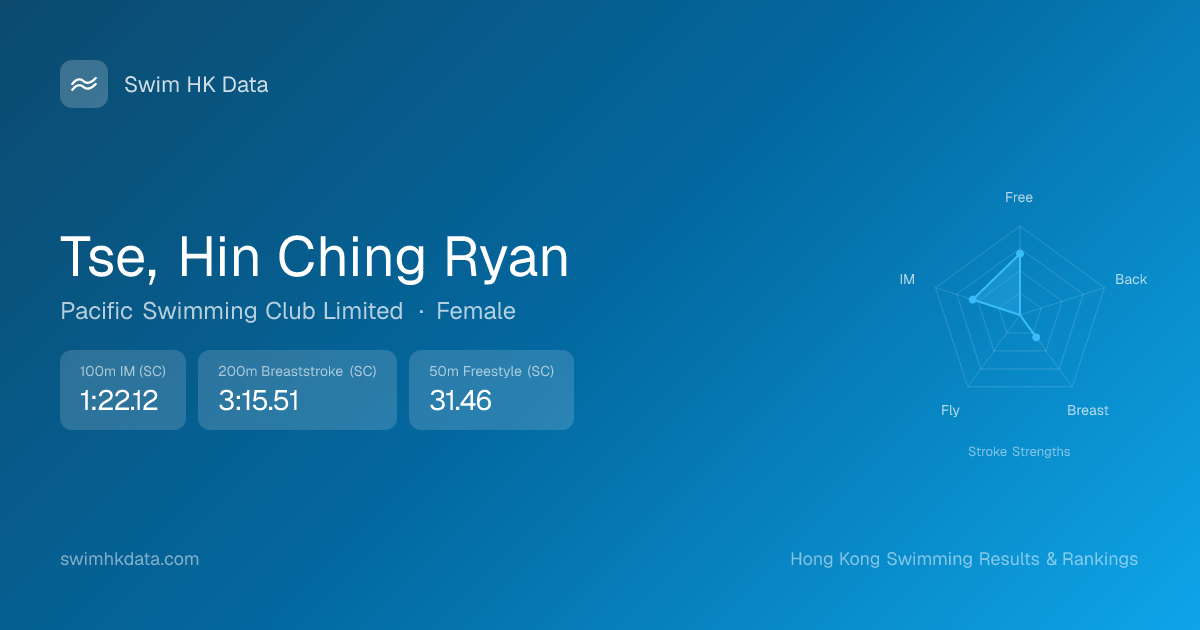 This chart shows how you compare in each stroke based on all your race results. It's just for fun — keep swimming, every practice makes you faster and stronger! 💪