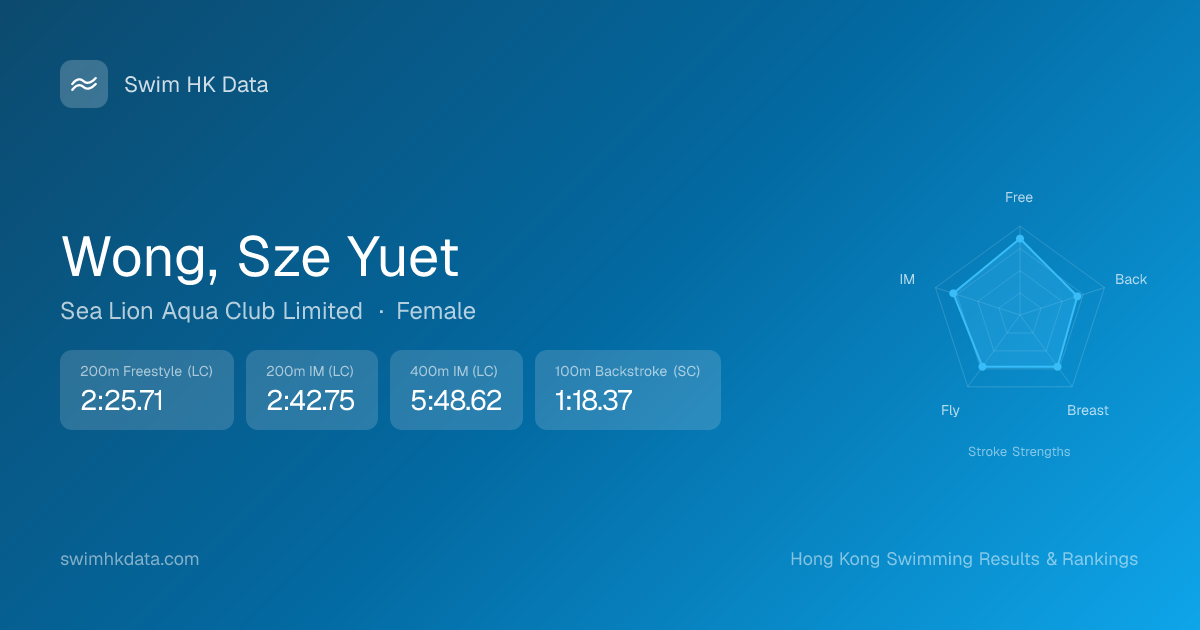 | 50m Butterfly | 33.87 2015-11-03 | 1 | 15 | 2015-11-03 |