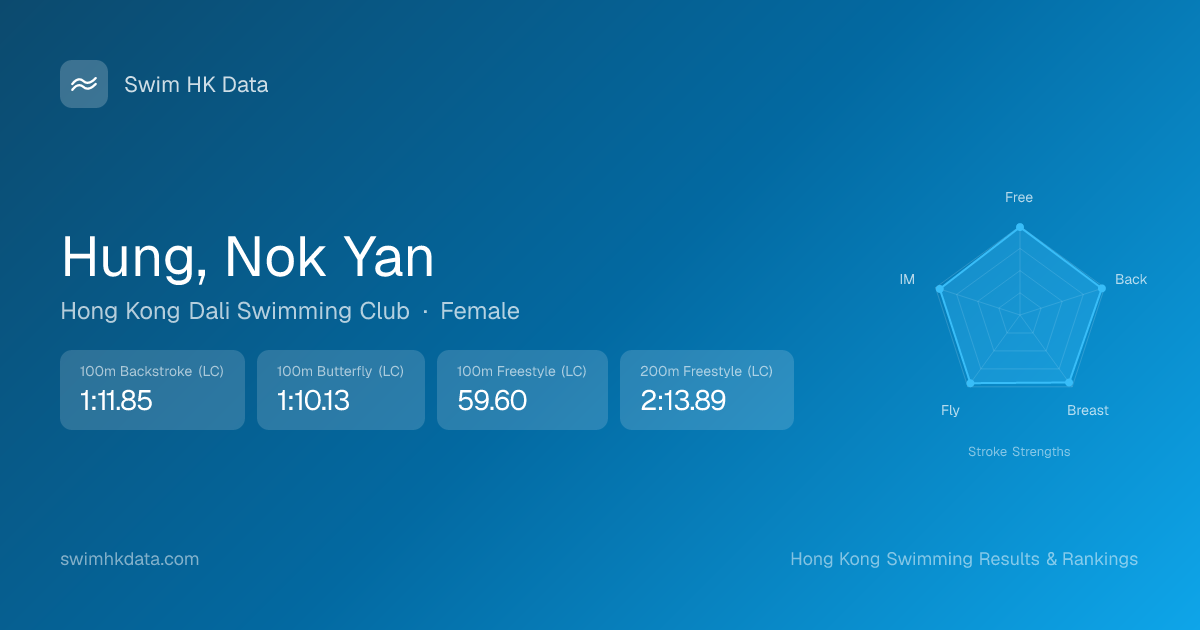 This chart shows how you compare in each stroke based on all your race results. It's just for fun — keep swimming, every practice makes you faster and stronger! 💪