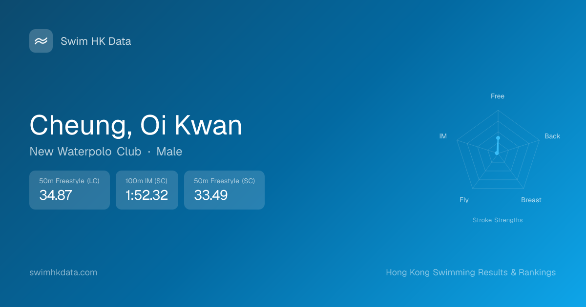 | 50m Freestyle | 34.87 2025-03-24 | 4 | 67 | 2025-03-24 |