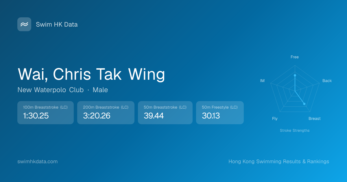 | 100m Breaststroke | 1:30.25 2019-12-06 | 1 | 59 | 2019-12-06 |