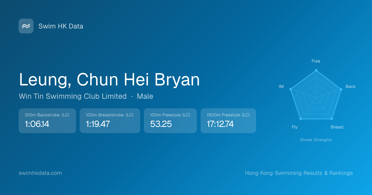 | 100m Freestyle | 52.34 2019-12-02 | 3 | 18 | 2019-12-02 |