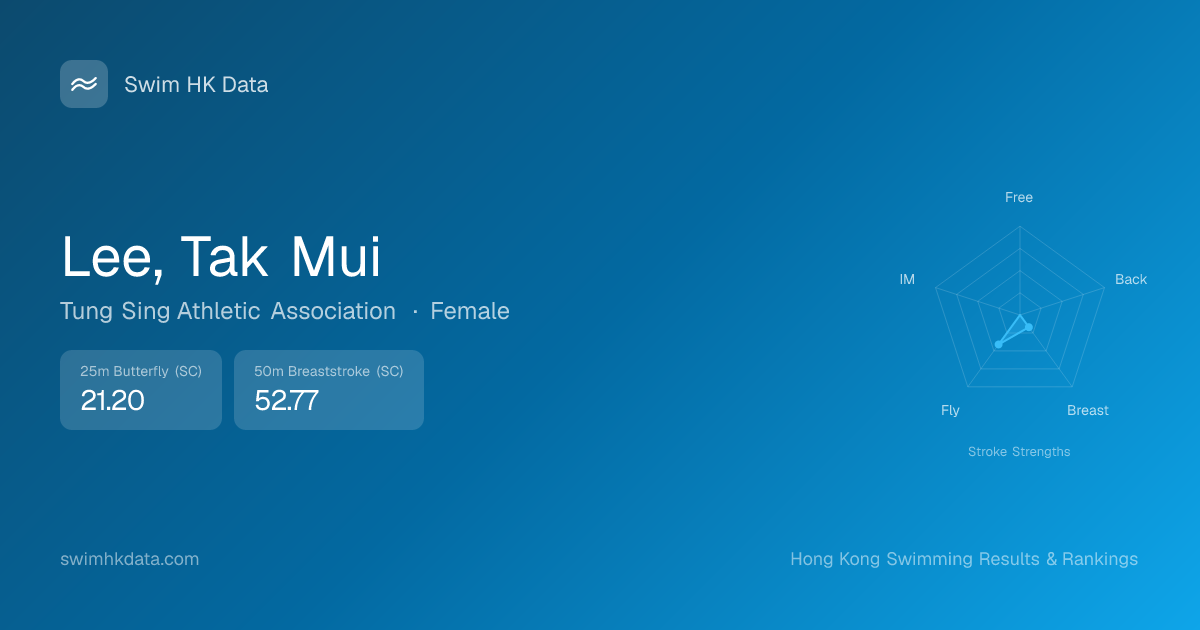 | 50m Breaststroke | 52.77 2021-09-29 | 4 | 51 | 2021-09-29 |