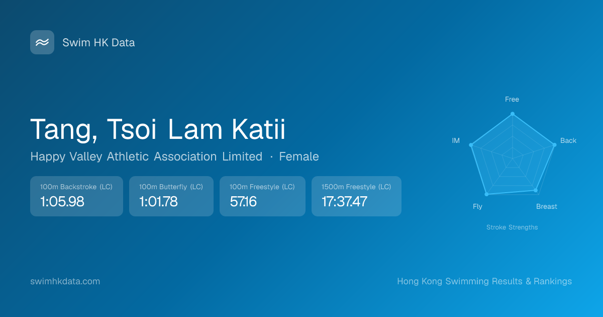 | 100m Butterfly | 1:01.76 2017-03-16 | 1 | 15 | 2017-03-16 |