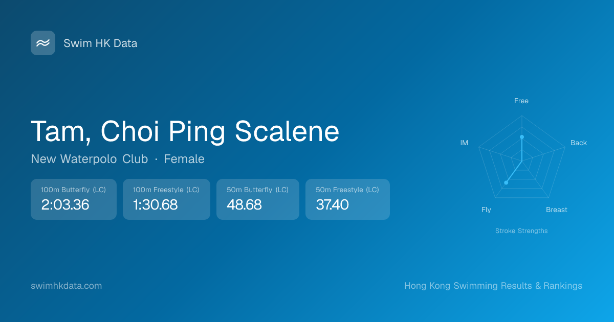 | 100m Freestyle | 1:30.68 2024-12-02 | 3 | 59 | 2024-12-02 |