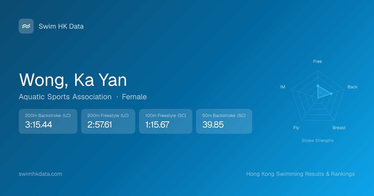 | 50m Backstroke | 39.85 2016-11-16 | 13 | 14 | 2016-11-16 |