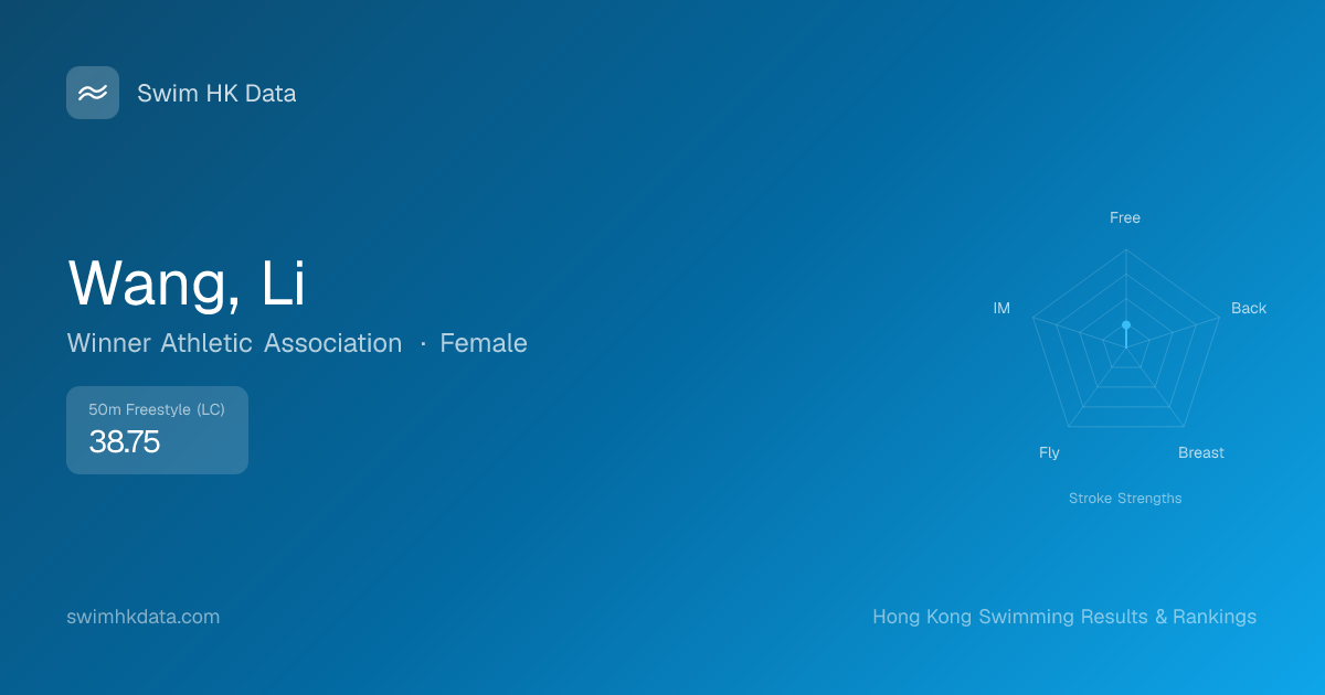 | 50m Freestyle | 38.75 2019-12-06 | 1 | 70 | 2019-12-06 |