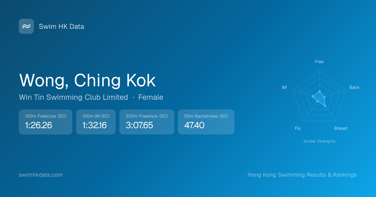 | 50m Backstroke | 47.40 2015-09-02 | 52 | 10 | 2015-09-02 |