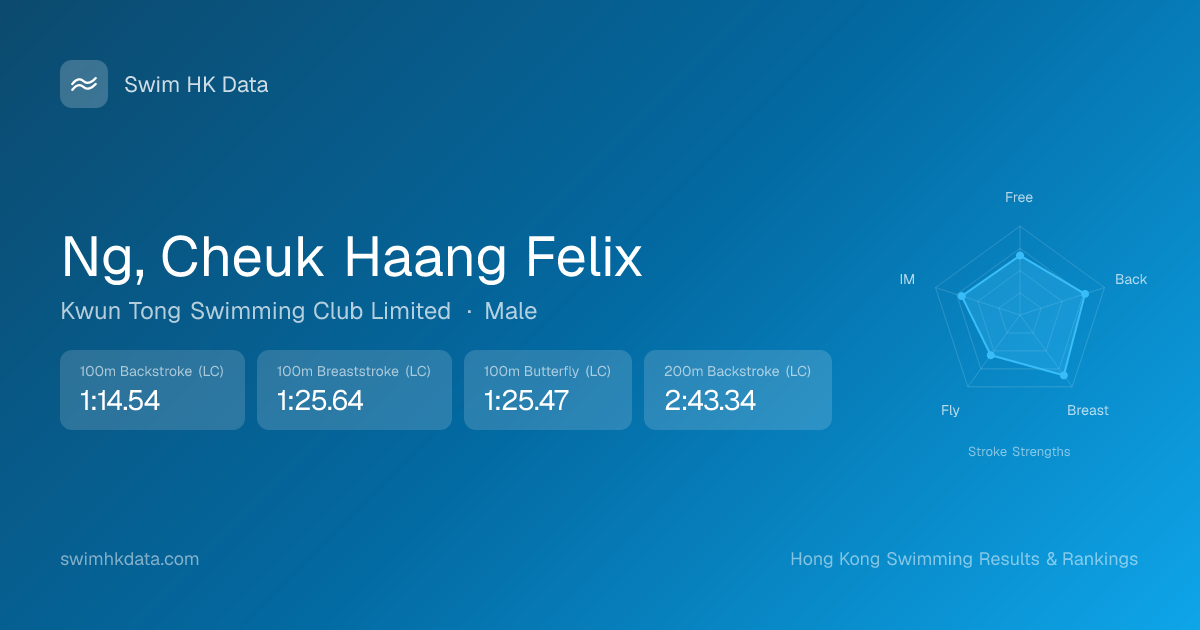 | 50m Butterfly | 33.95 2018-06-05 | 23 | 16 | 2018-06-05 |