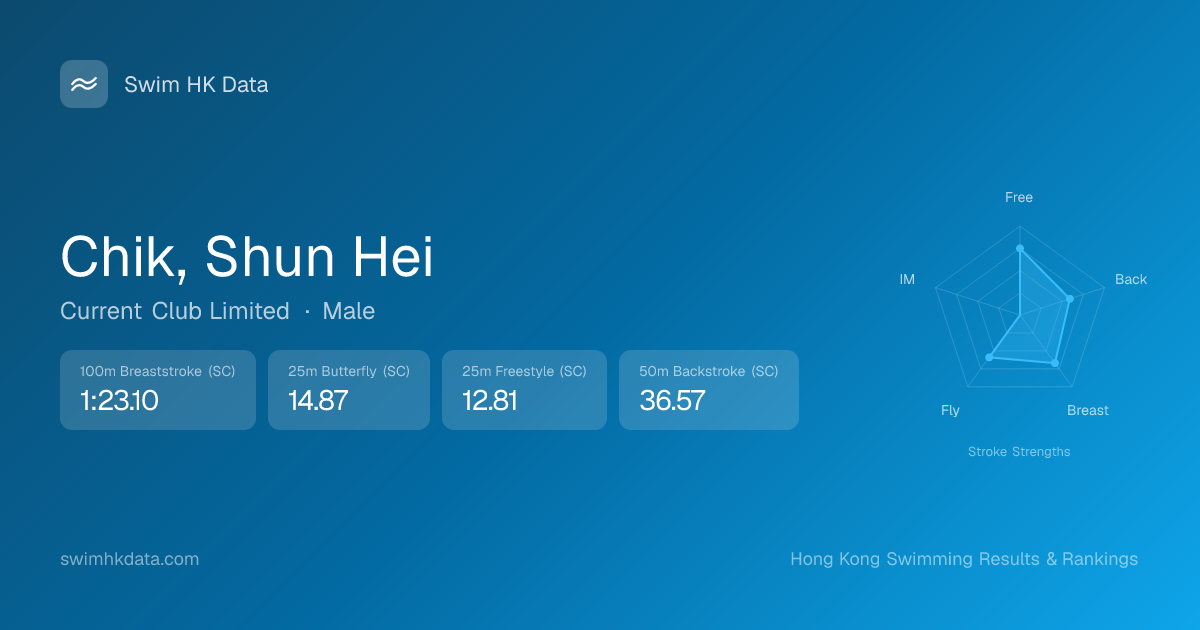 | 25m Freestyle | 12.81 2023-02-13 | 10 | 22 | 2023-02-13 |