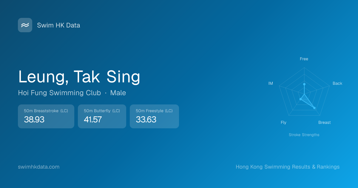 | 50m Breaststroke | 38.93 2025-03-24 | 2 | 59 | 2025-03-24 |