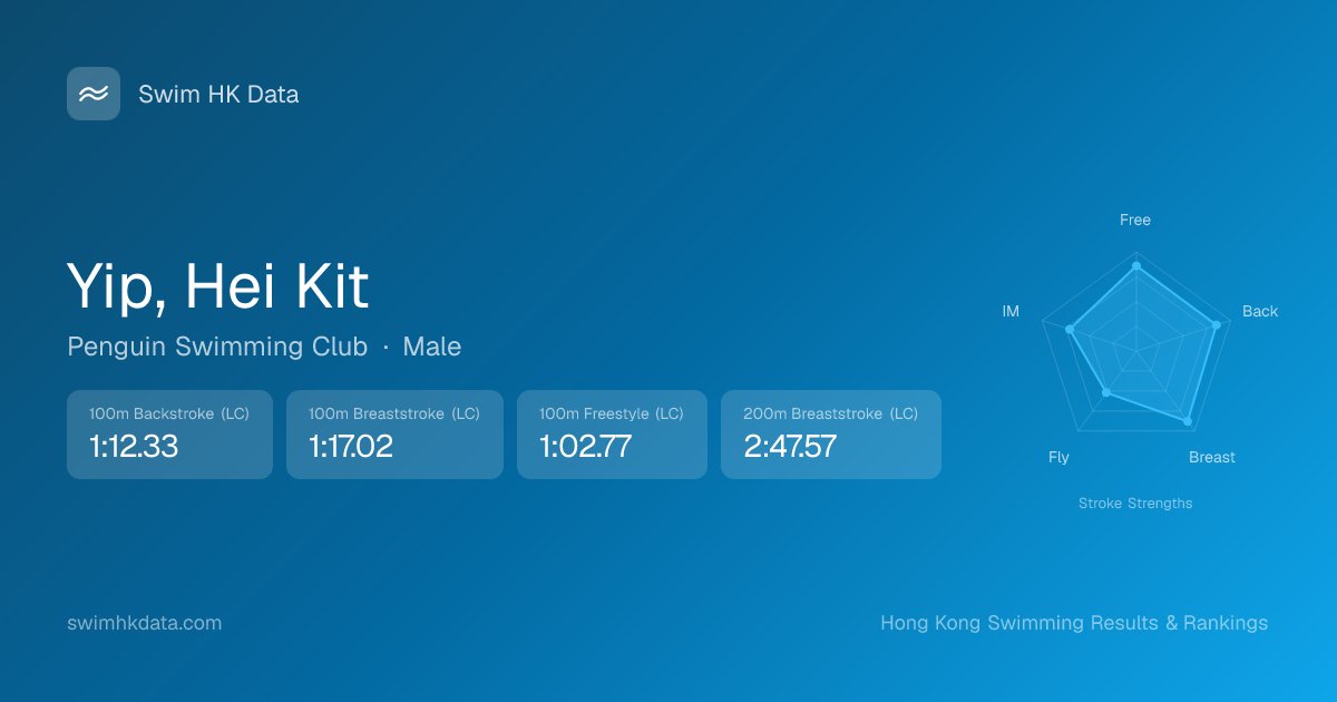 This chart shows how you compare in each stroke based on all your race results. It's just for fun — keep swimming, every practice makes you faster and stronger! 💪