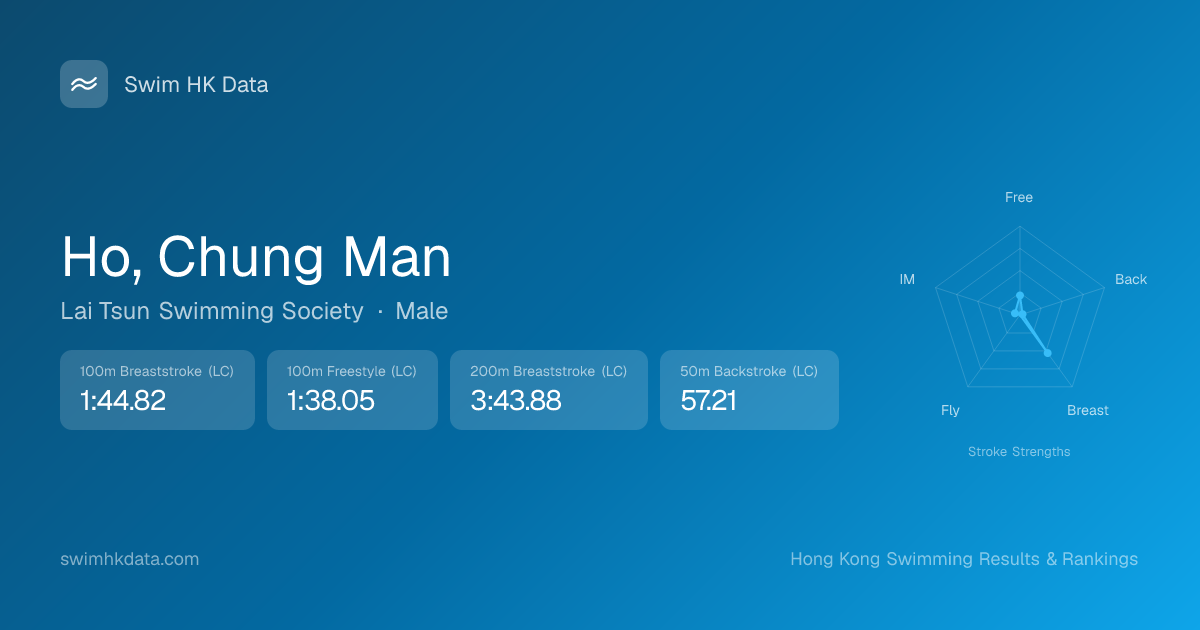 | 50m Freestyle | 38.62 2025-03-24 | 12 | 62 | 2025-03-24 |