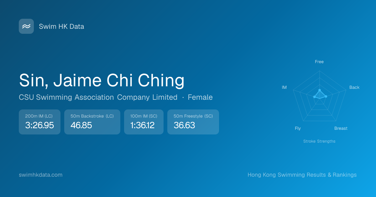 | 50m Backstroke | 46.85 2015-06-07 | 19 | 10 | 2015-06-07 |