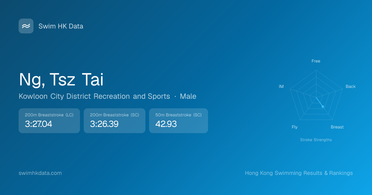 | 50m Breaststroke | 42.93 2015-12-14 | 44 | 12 | 2015-12-14 |