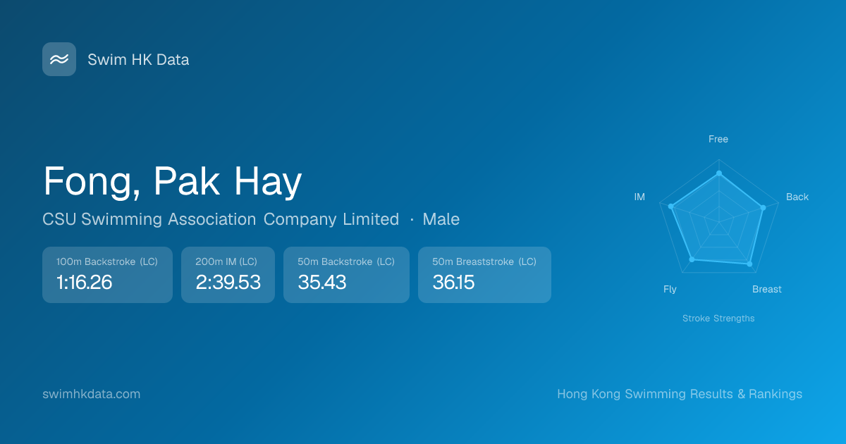 | 50m Backstroke | 35.43 2015-06-03 | 43 | 13 | 2015-06-03 |