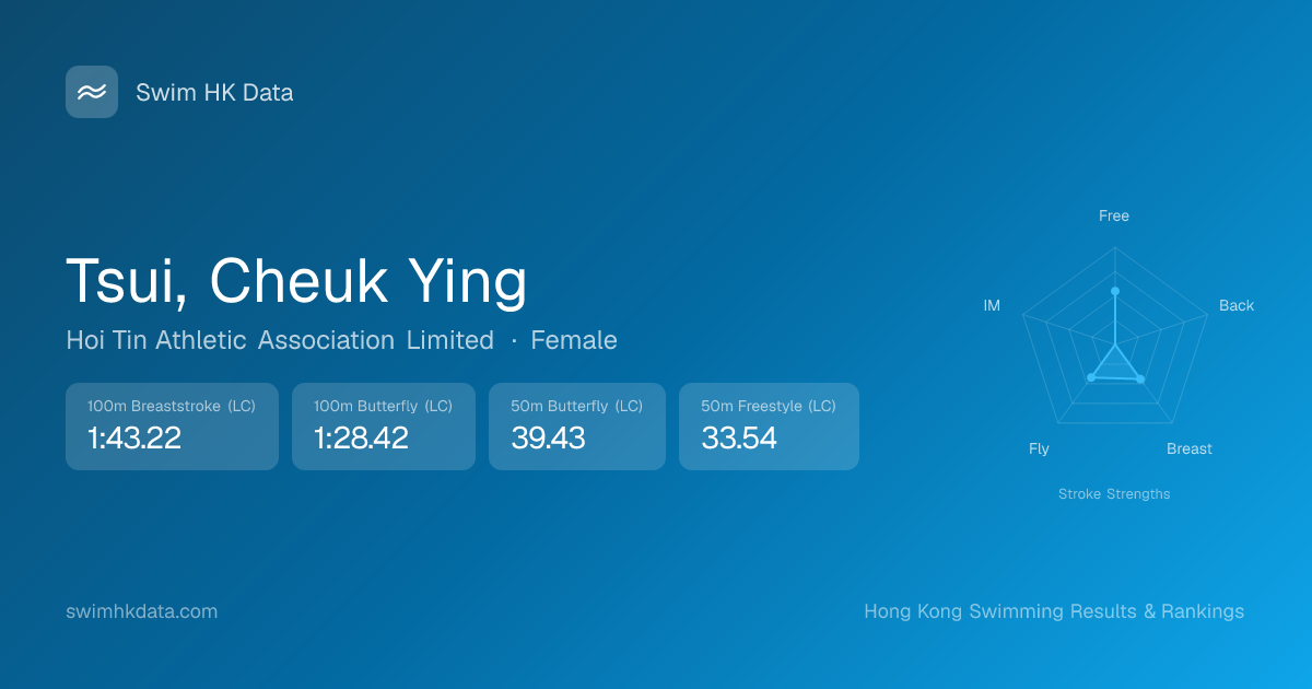 | 50m Butterfly | 39.43 2015-06-08 | 25 | 14 | 2015-06-08 |