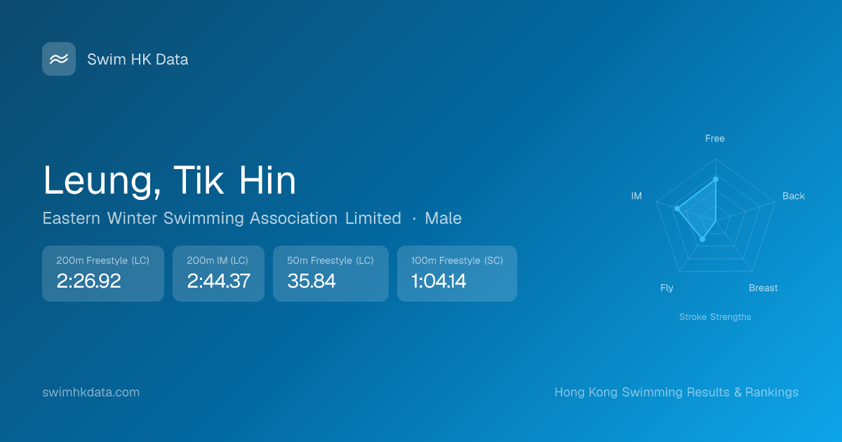 | 50m Freestyle | 35.84 2015-09-22 | 61 | 12 | 2015-09-22 |