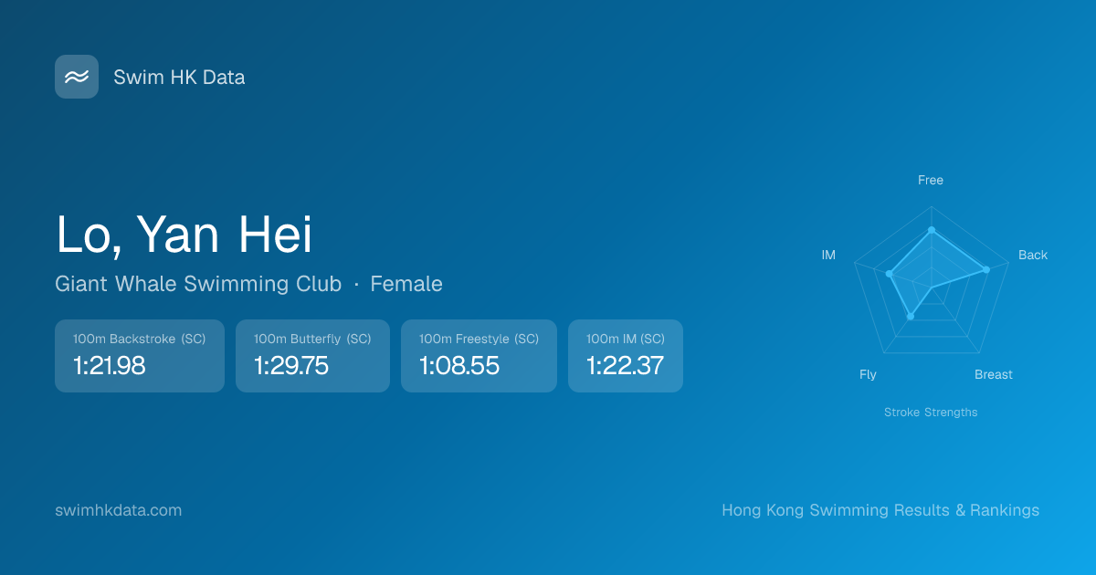 | 100m Backstroke | 1:21.98 2019-12-19 | 15 | 16 | 2019-12-19 |