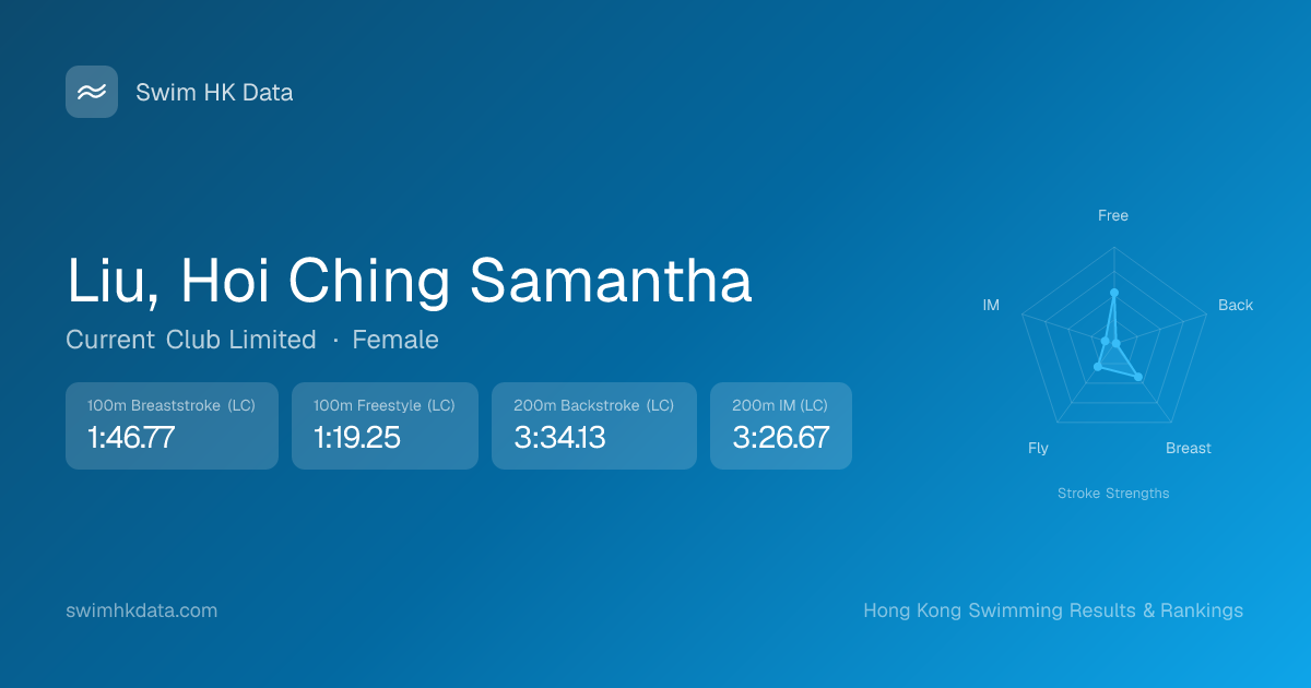 | 50m Breaststroke | 45.86 2015-11-03 | 14 | 14 | 2015-11-03 |