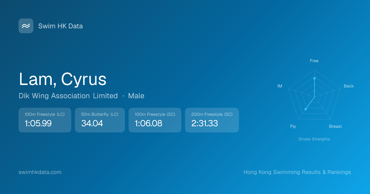 | 50m Butterfly | 34.04 2015-06-08 | 14 | 15 | 2015-06-08 |