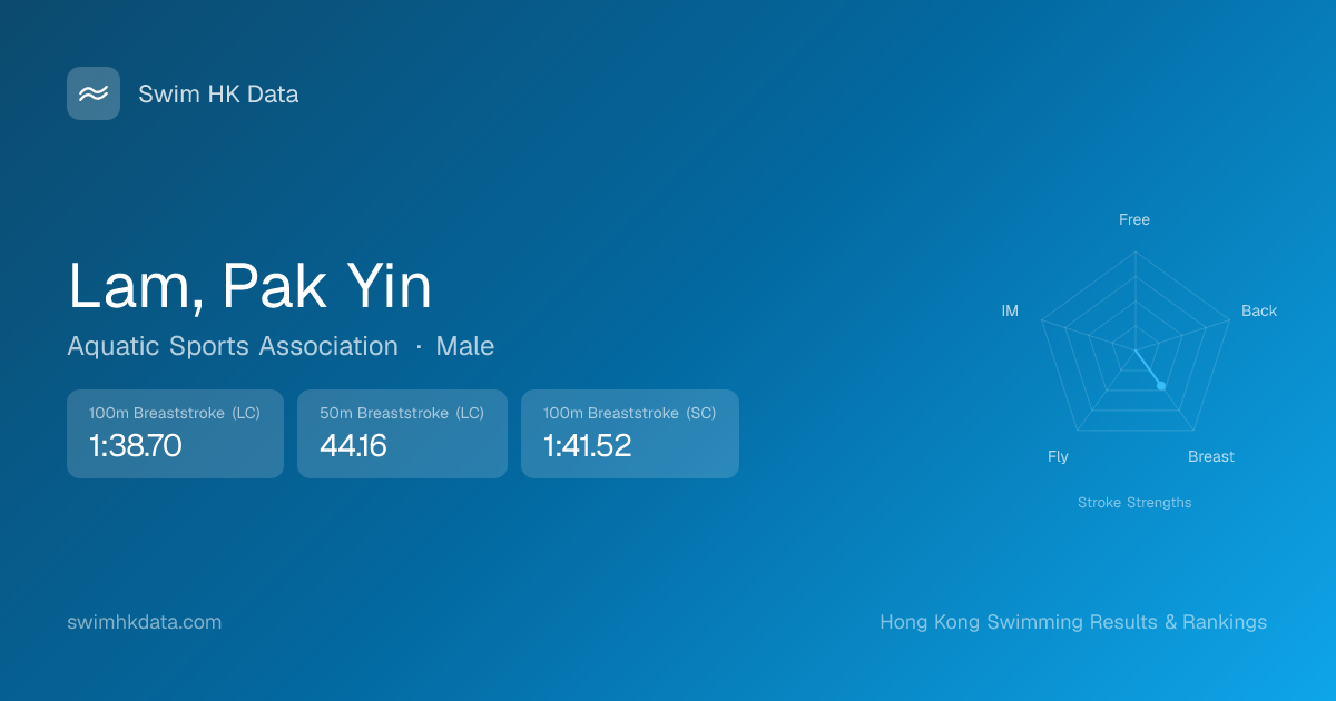 | 100m Breaststroke | 1:38.70 2017-05-29 | 6 | 12 | 2017-05-29 |