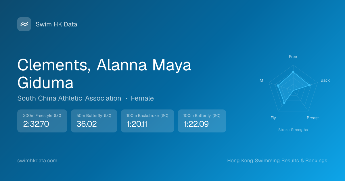 | 50m Butterfly | 36.30 2015-07-01 | 20 | 13 | 2015-07-01 |