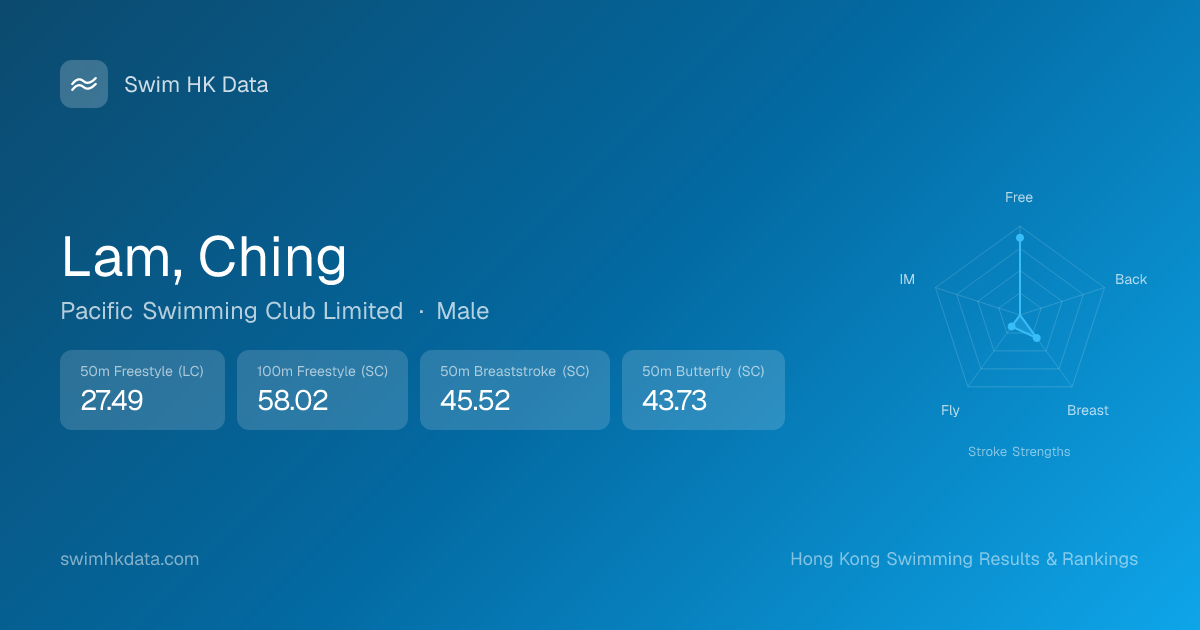 | 50m Freestyle | 26.95 2018-12-03 | 18 | 14 | 2018-12-03 |