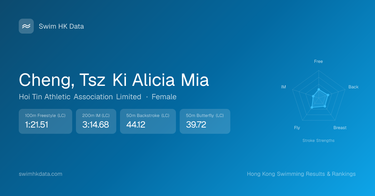 | 50m Butterfly | 39.72 2015-12-01 | 17 | 9 | 2015-12-01 |