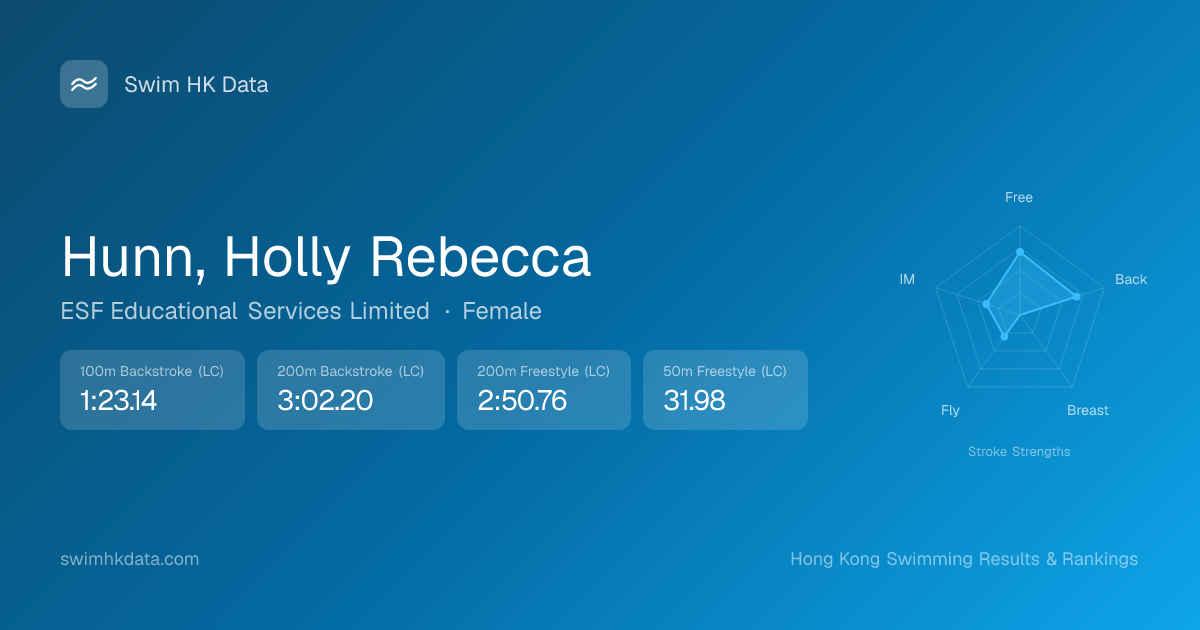 | 50m Freestyle | 31.98 2017-05-15 | 13 | 13 | 2017-05-15 |