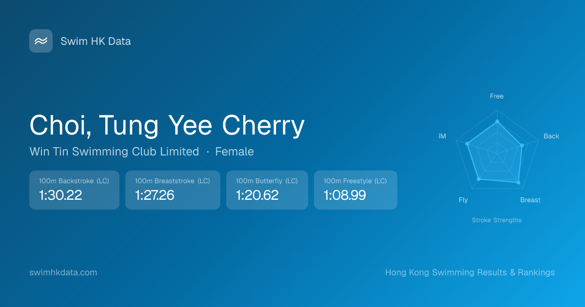 | 100m Butterfly | 1:22.45 2016-03-14 | 10 | 10 | 2016-03-14 |