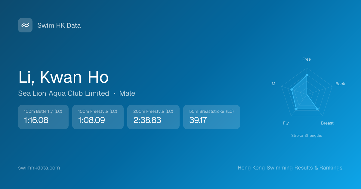 | 100m Butterfly | 1:16.08 2017-10-19 | 3 | 15 | 2017-10-19 |