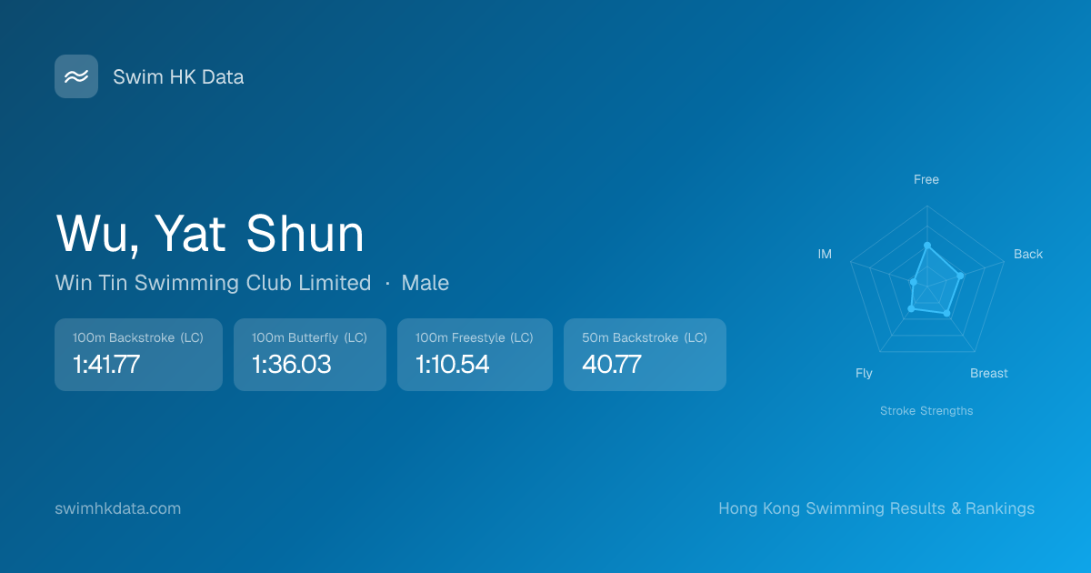 | 50m Butterfly | 37.58 2017-12-04 | 48 | 12 | 2017-12-04 |